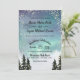Starry Northern Lights, Wintery watercolor mountain wedding invitation. Pretty blend of purple, blue and green watercolor sky with winter mountain pine trees.