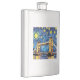 The product is a good size and came exactly as it was pictured.  The lid is not attached to the flask, which could be dangerous on drunken nights... The print came out surprisingly well and looks very sharp.  Would definitely recommend.