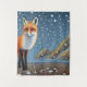 A fun, cute storybook character Fox on a starry winters night.
