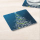 Starry Swirling Christmas Tree on Blue Square Paper Coaster