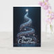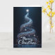 A twinkling tree beneath a midnight sky. This elegant Christmas card features a stylized tree made of radiant light strands and shimmering particles, crowned with a glowing star. Set against a rich blue background, the design evokes peace, wonder, and festive joy. The graceful “Merry Christmas” script adds warmth and tradition, making this card a perfect choice for sending heartfelt holiday wishes with a touch of sparkle.