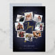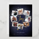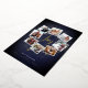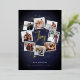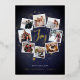 A festive holiday card design that features eight of your favourite photos arranged in a round wreath design accented by gold foil stars on a midnight blue background. "Joy" appears in the centre in gold foil hand lettered brush script typography. Personalise this unique holiday photo collage design with your custom Christmas greeting and names at the bottom.