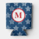 Navy Blue background with White Striped STARS with a Red Monogram COVER THIS CAN COOLER-- CUSTOMIZE with the year or change the text~ Colours are RED, WHITE & BLUE. A fun CAN COVER to use at your Fourth of July party or summer cookouts. If you would like a different colour to match your wedding colours please email paula@labellarue.com BEFORE placing and order and a new template will be created.