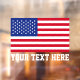 Patriotic American flag static transparent Window Cling sign. Custom signs for home, shops, museums, business, office, workplace, school, store, company, coffee, bar, pub, restaurant and other public indoor places. Make your own clear see through signage with modern text. Non adhesive. Sticks to window. Welcome sign for customers, clients, visitors, guests etc. Face print outwards or inwards. Printed on one side.