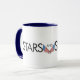 Mug in white and navy blue, with Stars and Stripes full colour logo displayed around the cup. Enjoy your favourite cold or hot drink with this mug!