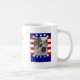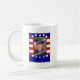 The stars and stripes frame is made up of stripes of red, white and blue, with white stars. It reads, "My heroes," in the centre in blue, calligraphic font. The mug template is set up so you can change or add to this message.