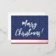 Stars and Stripes Silver Script Merry Christmas Foil Holiday Postcard