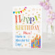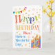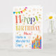 A colourful, text-based Birthday Card for a Mum, with Polka Dot Bunting, bright, striped birthday cake candles and sprinkled with gold-effect stars. The patterned text says, 'Happy Birthday' and there is also 'Have a wonderful day!' in blue lettering (NB the gold effect stars and outlines will be as seen and not be printed in metallic ink.)