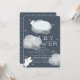 This cute gender neutral baby shower invitation card features a sleeping polar bear on cloud and a flying polar bear in space with faux gold glitter stars and fluffy clouds on midnight blue / navy blue background. The reverse side features navy blue / midnight blue polka dot patterns. Personalise it for your needs. You can find more polar bear products at my store.