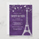 Stars Confetti Silver Eiffel Tower Purple Sweet 16 Invitation