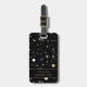 Cool luggage tag with a space pattern of constellations, stars, galaxies, moons, and suns. The pattern is black with details in white, yellow, and silver grey. Customise with your name.