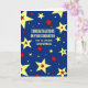 Congratulations on your graduation card for grandniece with colourful blue, red and yellow stars and sentimental verse.