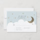 This cute boy's baptism RSVP/reply/responce card features a baby blue background with faux gold glitter stars, the crescent moon, and white clouds. The reverse side features a white background faux gold random dot patterns. Personalise for your needs. You can find more matching products at my store.