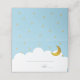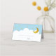 This cute place/table/seating card features a baby blue background with faux gold glitter stars, the crescent moon, and white clouds. The reverse side features a white background faux gold random dot patterns. Personalise for your needs. You can find more matching products at my store.