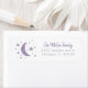 Sweet return address label for your stars theme baby shower party invitation. Moon and stars in lavender faux foil. Texts are easily customisable online.