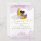 Stars Moon Lilac Angel African Girl Baby Shower Invitation