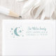 Sweet return address label for your stars theme baby shower party invitation. Moon and stars in mint faux foil. Texts are easily customisable online.