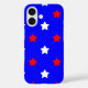 Do you like star theme phone cases? This phone case has a pattern of red and white stars on a blue background.