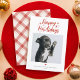 Send warm holiday wishes with our pet Photo Christmas Card. The card features "Happy Howlidays" in vibrant red handwritten script adorned with hand-drawn stars and dots. On the reverse side, you'll find a trendy red and beige tartan plaid, creating a festive and cosy atmosphere.