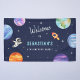 Welcome your little birthday guests with this cute customisable solar system kids birthday banner featuring watercolor illustrations of the galaxy, stars, planets, a rocket ship and, an astronaut. Perfect for children, who love a blast of an outer space adventure on their birthday. Personalise it with the special boy's or girl's name and utilise the editing tool for any additional adjustments to the font size and placement. Feel free to reach out to us on Zazzle if you need assistance with customisation.