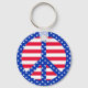 A bright red, white and blue stars and stripes design on a peace symbol keychain.