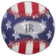 This American flag regulation softball features a stylised representation of the USA flag with red and white stripes on one strip of the softball's cover and white stars on blue on the other strip, blended with a subtle digital texture - customise with his or her initials - by katz_d_zynes