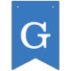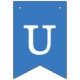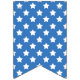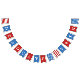 Bunting flags in red, white, and blue featuring a retro typewriter font, stars and stripes for a graduation party.