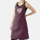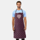 Pink hearts form a polka dot pattern on a rich port wine background. Hiding inside some of the hearts is a gold star with an emulated metallic shine, creating a playful and cute design. Customise the monogram on this apron with your own initial to create an accessory that is uniquely your own, whether you use it for cooking, baking, gardening, art, or any other endeavour where you want to keep your clothes more protected.