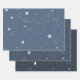 Set of 3 Stars Gift Wrap, each sheet is a different shade of blue.