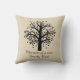 Wedding Keepsake Pillow, Family Tree; black on taupe, with Silhouette of black Tree on a pale ecru/taupe pillow, add Couples' Names and Wedding Date on the front of the pillow; Back of the pillow says "the start of a new family tree" (or edit text as you'd like)