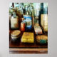 If you need to find a gift for a doctor, pharmacist or anyone in the health field, this design of interesting boxes and bottles of medicine including cough remedies and a blue tin of tooth powder would be a great choice added to any of these products.