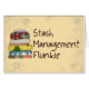 Humourous design for needleworkers: "Stash Management Flunkie". A stash of colourful material for a seamstress, and a funny saying. The perfect design for sewers!