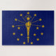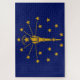 This design features the state flag of Indiana, which is is a U.S. state in the Midwestern and Great Lakes regions of North America. It borders Lake Michigan to the northwest, Michigan to the north, Ohio to the east, the Ohio River and Kentucky to the south and southeast, and the Wabash River and Illinois to the west. Indiana was admitted to the United States as the 19th state on December 11, 1816. The flag of Indiana was designed by Paul Hadley and officially adopted by the state of Indiana in 1917. The flag consists of a gold torch that represents liberty and enlightenment; the rays around the torch represent their far-reaching influence. The nineteen stars represent Indiana's place as the nineteenth state to join the United States. The thirteen stars in the outer loop symbolise the original Thirteen Colonies, the five inner stars represent the next five states added to the Union, and the one large star above the torch represents Indiana. The capital city of Indiana is Indianapolis, which is also the largest city in the state. Other major cities in Indiana include Fort Wayne, Evansville, South Bend, Carmel, Fishers, Bloomington, Hammond, Gary, Lafayette, Muncie, Noblesville, Terre Haute, Greenwood, Kokomo, Anderson, Elkhart, Mishawaka and Lawrence.
