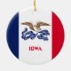 This design features the state flag of Iowa, which is a state in the Midwestern United States, bordered by the Mississippi River to the east and the Missouri River & Big Sioux River to the west. It has borders with six other states: Wisconsin to the northeast, Illinois to the east and southeast, Missouri to the south, Nebraska to the west, South Dakota to the northwest and Minnesota to the north. The state is sometimes known as the "Hawkeye State". The state flag of Iowa is a vertical tricolor of blue, white, and red, reflecting the U.S. state of Iowa's history as part of the French Louisiana Territory. There is an image of a bald eagle holding a long ribbon that reads, "Our liberties we prize and our rights we will maintain", derived from the Seal of Iowa. The capital city of Iowa is Des Moines. Other major cities in Iowa include Cedar Rapids, Davenport, Sioux City, Iowa City, Ankeny, Waterloo, Ames, Council Bluffs, Dubuque, Urbandale, Cedar Falls, Marion and Bettendorf.
