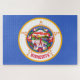 This design features the state flag of Minnesota, which is a state in the Upper Midwest, Great Lakes and northern regions of the United States. Minnesota was admitted as the 32nd U.S. state on May 11, 1858, created from the eastern half of the Minnesota Territory. The state has many lakes, and is known as the "Land of 10,000 Lakes"; it is also known as "North Star State", the "Gopher State", the "Agate State", "True North" and the "State of Hockey". Its official motto is "L'Étoile du Nord" (French for "The Star of the North"). The capital of Minnesota is Saint Paul, whereas its largest city is Minneapolis. The state flag contains a modified version of the seal of Minnesota on a light blue background.