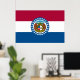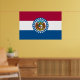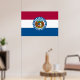 This design features the flag of Missouri, which is a state in the Midwestern United States. Missouri is bordered by eight states (tied for the most with Tennessee): Iowa to the north, Illinois, Kentucky and Tennessee (via the Mississippi River) to the east, Arkansas to the south and Oklahoma, Kansas and Nebraska to the west. In the south are the Ozarks, a forested highland, providing timber, minerals and recreation. The Missouri River, after which the state is named, flows through the center of the state into the Mississippi River, which makes up Missouri's eastern border. The capital of Missouri is Jefferson City, while the largest city in Missouri is Kansas City; other major cities in Missouri are St. Louis, Springfield, Columbia, Independence, Lee's Summit, O'Fallon, St. Joseph, St. Charles and St. Peters.