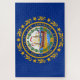 This design features the state flag of New Hampshire (NH), which is a state in the New England region of the northeastern United States. New Hampshire is bordered by Massachusetts to the south, Vermont to the west, Maine and the Atlantic Ocean to the east and the Canadian province of Quebec to the north. New Hampshire is sometimes known as the "Granite State" or the "White Mountain State. The state motto of New Hampshire is "Live Free or Die". Concord is the state capital of New Hampshire, while Manchester is its largest city. Other major cities in New Hampshire include Nashua, Derry, Dover, Rochester, Salem, Merrimack, Hudson, Londonderry, Keene, Bedford, Portsmouth, Goffstown, Laconia, Hampton, Milford, Durham, Exeter, Windham, Hooksett and Claremont.