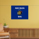 This design features the state flag of Wisconsin, which is located in the Midwest and Great Lakes regions of the United States. It is bordered by Minnesota to the west, Iowa to the southwest, Illinois to the south, Lake Michigan to the east, Michigan to the northeast and Lake Superior to the north. The state capital of Wisconsin is Madison, and its largest city is Milwaukee. The state is one of the nation's leading dairy producers and is known as "America's Dairyland". It is also known as the "Badger State". The state flag of Wisconsin features the state's coat of arms on a blue background; it also shows text containing the name of the state and the year 1848, which was the year that Wisconsin was admitted to the Union.