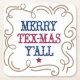 Big bold western style letters wish you a Merry Tex-Mas Y'all. Official red and blue of the lone star state flag, although available in traditional Christmas colours of red and green as well. Typography surrounded by a looping rope frame. Add a little Texas flair to your Christmas party decorating this year. Great small gift idea or stocking stuffer for any Texan. Consider for teacher, coach, tutor, boss, grandma, mother and more. Matching products available.