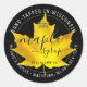 State Name Fancy Font Maple Syrup Yellow Leaf Classic Round Sticker