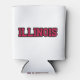 This custom can cooler features a design that displays the word "Illinois" in a Kompot Slab print font with red letters black outline in this custom state pride jersey style theme. Our can coolers fits any standard 12 oz cans and is customised on all sides including the bottom and made with high-density open-cell polyurethane collapsible foam material for easy storage.