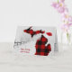 Black and red buffalo plaid with furry Santa Claus hat winter rural scene with state of Michigan