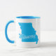 Show your home state pride with these t-shirts and other items that have a blue outline of the state of Missouri with the name inside the shape.