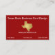 State of Texas Business Card Template. Colours of red and Metallic Gold Texas State Business Card. Customise your font, card colour, state of Texas size and more online to create your personalised Texas Business Card. Create a plain card or customise your message and information.