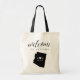 Welcome guests to your Arizona wedding with these chic and modern personalised tote bags. Design features "welcome" in modern handwritten calligraphy script, with your initials joined by a heart, along with your wedding date, inside a black silhouette map of the state of Arizona. Personalise with a specific Arizona city or location name if desired.