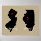 Customise your own poster! Every state is located in the design, you just have to turn on the states you want and leave the ones you don't want off. Move the hearts to your town location and update the town name. Choose a background colour and rotate the dashed line and you are done! If you have any problems let me know and I would be more than happy to make it custom for you and have it look perfect! KymberliDesigns@gmail.com