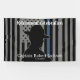 Our State Trooper Black Gold Retirement Banner is a sophisticated and personalised way to recognise the hard work and dedication of a retiring state trooper. It is sure to be treasured as a cherished memento of their service and commitment to law enforcement.  Design has a silhouette of a state trooper in front of a American Flag with a blue line.  Use the easy template to change the wording to suit your occasion. Choose banners for inside or outside.