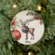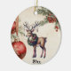 This delightful ornament has a stately Reindeer on one side with a wreath around his neck and decorated antlers. Antique Victorian ornaments are hanging beside him as well as holly and beries. There is a template for the year at the bottom. The reverse side has a gorgeous display of red and white roses, holly and berries and eucalyptus on the reverse side. It's an ornament that will be treasured for many years to come.