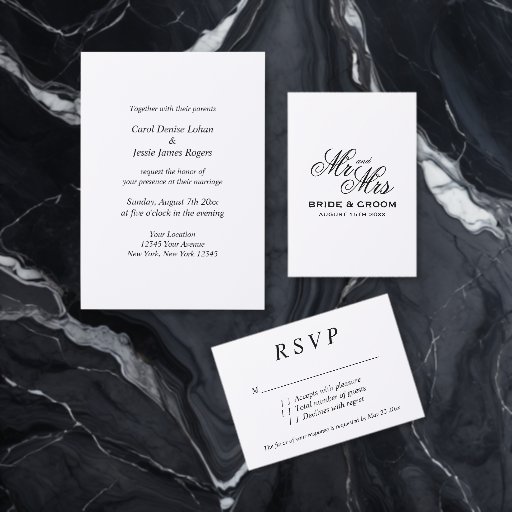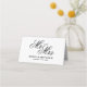 Stately script typography Mr & Mrs wedding Place Card for fancy reception. Black and white folded place cards. Beautiful font type for formal marriage party.