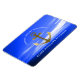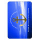 Fun, personalised cruise vacation nautical stateroom marker magnet especially for retired couples- Reads 'Cruising Through Retirement' at the top in curved, white letters. Personalised names at bottom in white. Centred is a faux metallic gold anchor. Against a beautiful ocean sky photo in various shades of blue. Completely customisable for any cruise vacations, including family reunion vacations, tropical honeymoon cruise, romantic anniversary cruises, destination weddings, and other Caribbean vacation cruises. Very useful for finding your cruise ship stateroom after a late night! Unique retirement gift! Get personalised cruise ship cabin markers for every family member or all of the wedding bridal party, etc, as a cruise vacation memento souvenir.